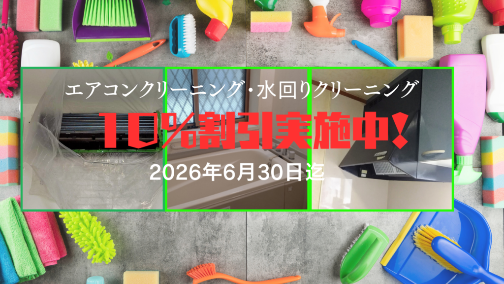 LINE公式割引実施中です。 2026年6月30日まで エアコンクリーニング・水回りクリーニング他 10%割引実施中‼ ご予約の合計金額より10%割引でお見積りいたします。 おそうじde掃快LINE公式アカウント